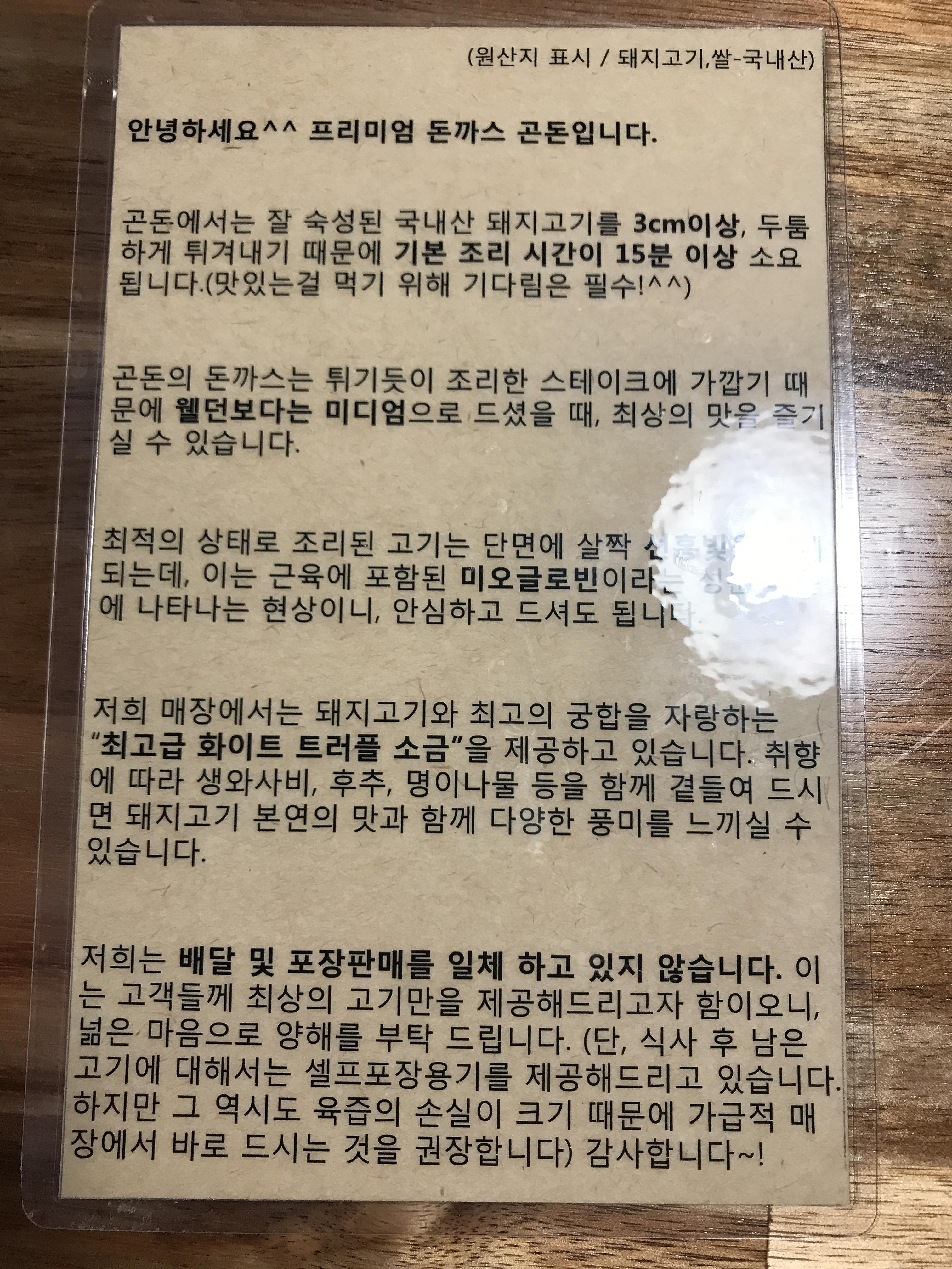 돈가스로 유명한 정x에 비해 떨어지지 않는 맛이었다. 맛있는 돈가스를 10000원대에 먹을 수 있는 집이다. 또 갈 의향이 있는 집이다.