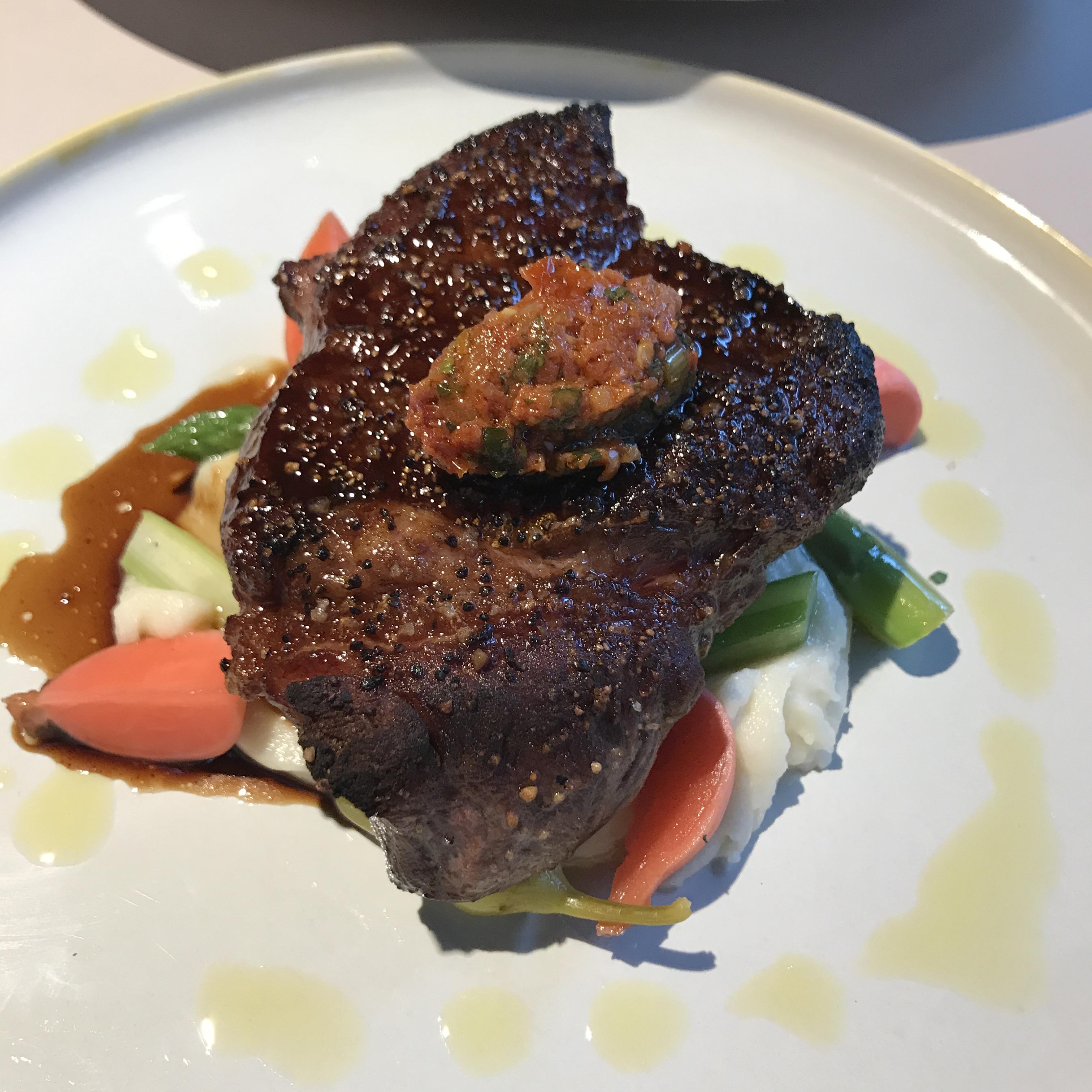 채끝 등심 스테이크는 매우 맛있습니다.