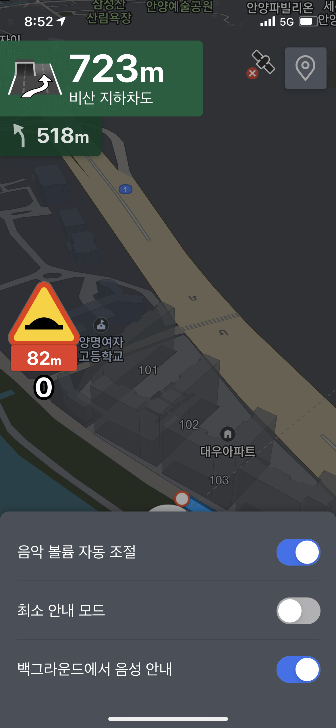 두 가지중 인공지능 NUGU를 끄고, 음악 볼륨 자동 조절을 켜 둔 채로 사용하면, 이전에 있던 내비게이션 사용 중 음악소리 때문에 안내를 못 받는 경우는 없어지게 된다.