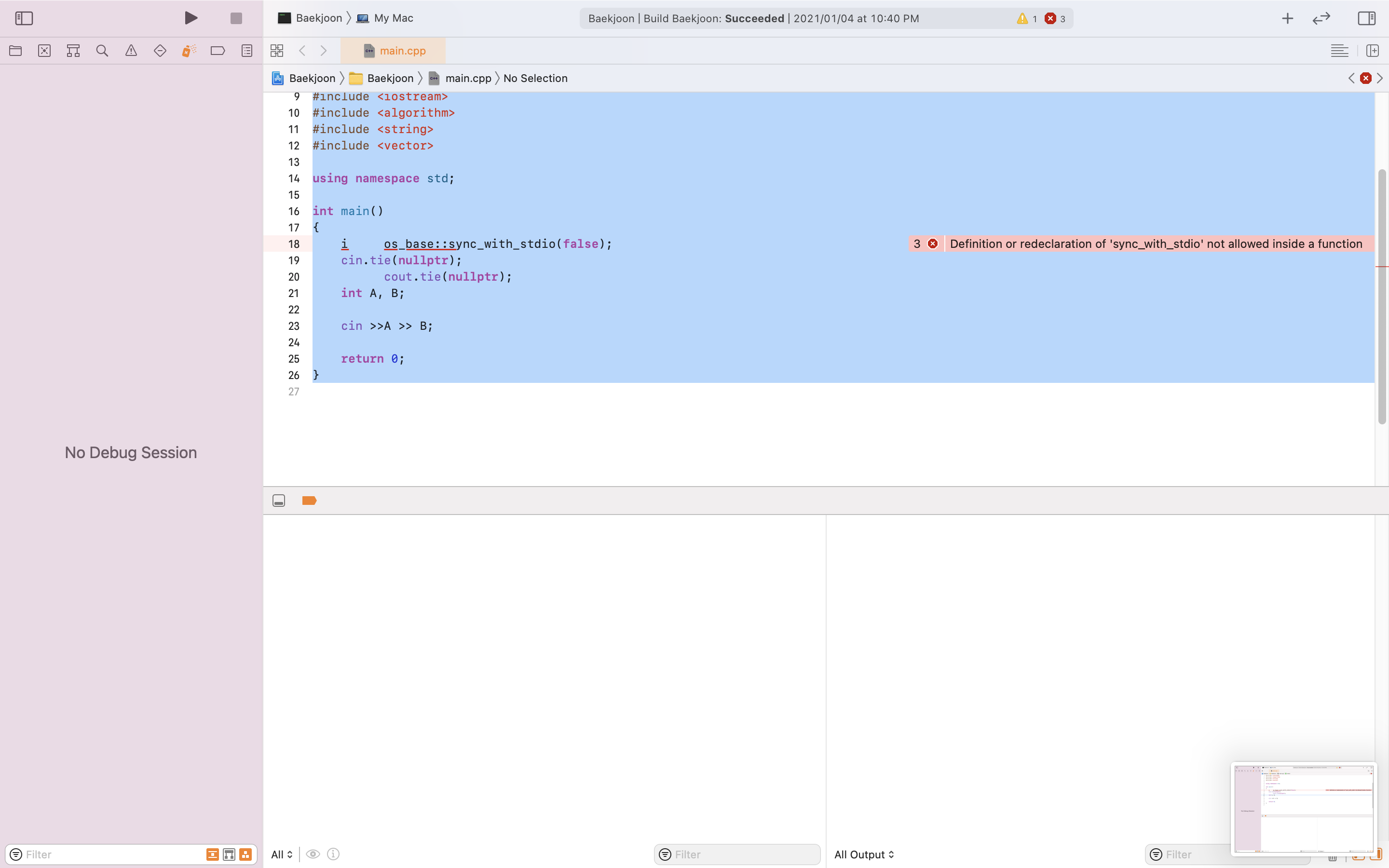 줄이 정렬되어 있지 않은 상태 전체 선택한 모습 맥북의 경우 < COMMAND + A > 를 이용해 전체 선택을 할 수 있습니다.