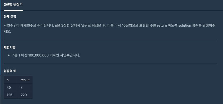 => 이후 3진법을 거꾸로 하라고 하였지만 굳이 그럴 필요는 없습니다.