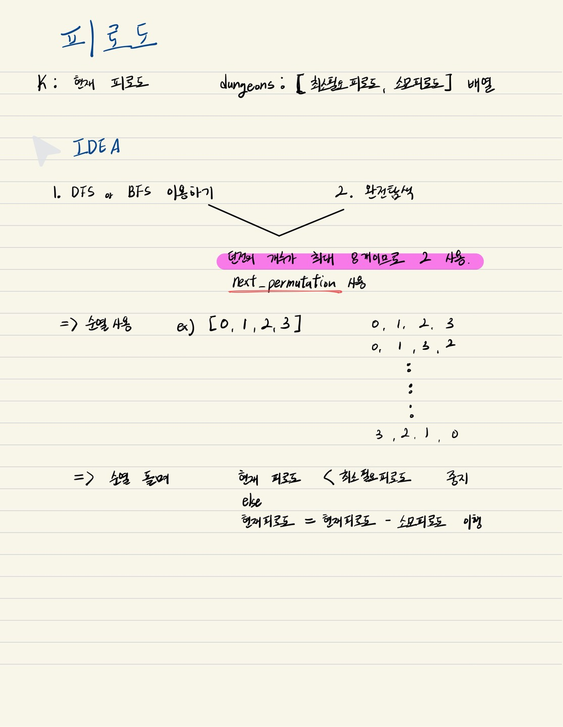 => 하지만 제한사항을 보면, dungeons의 길이는 최대 8개입니다.