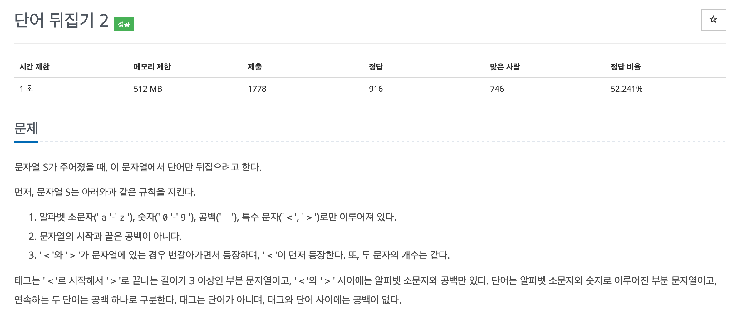 다른 점은 tag를 생각하고 풀어야한다는 점이다.거꾸로 print하고 싶은 문자는 stack에 쌓은 후 차레대로 pop하면서 풀면 거꾸로 출력할 수 있다.