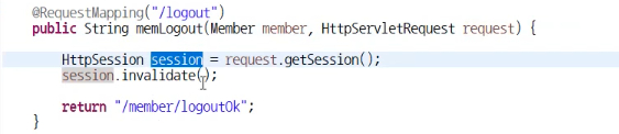 => invalidate() 를 사용해 세션 삭제 가능함