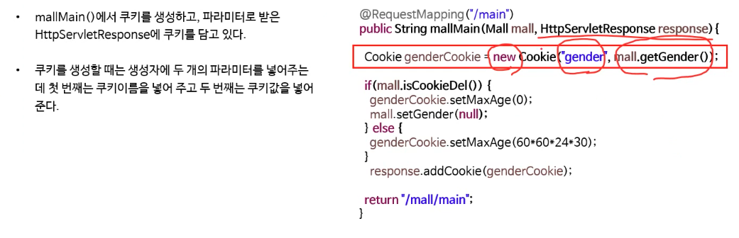 =>addCookie() 를 통해 클라이언트에 정보 저장함
