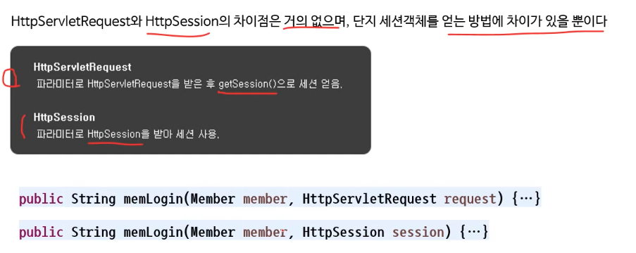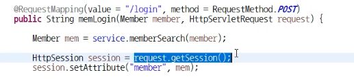 => 세션을 바로 받아, getSession 필요 없이 setAttribute 을 하면 됨