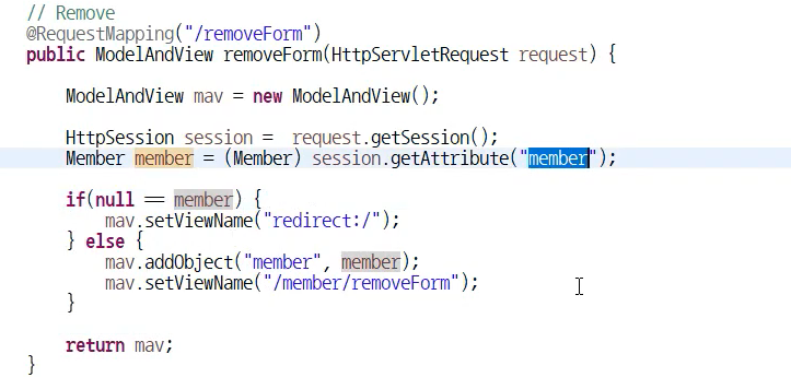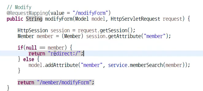 => 회원정보 수정을 요구한 후에, 회원 인증이 안되어있는 경우 로그인을 한 다음 회원정보 수정 페이지로 유도함