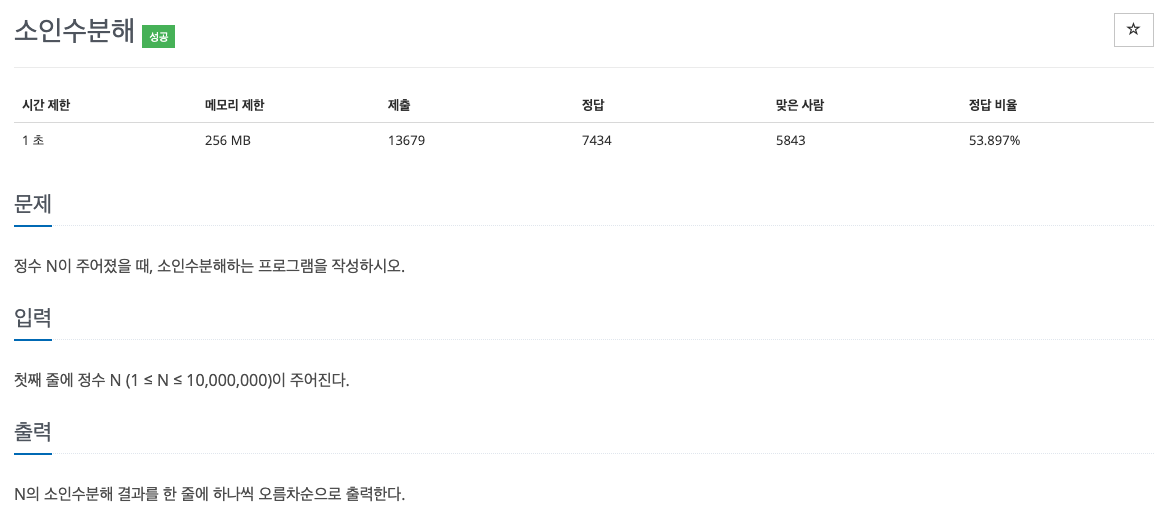 문제 설명 => 소인수분해를 프로그래밍으로 구현하는 문제이다.