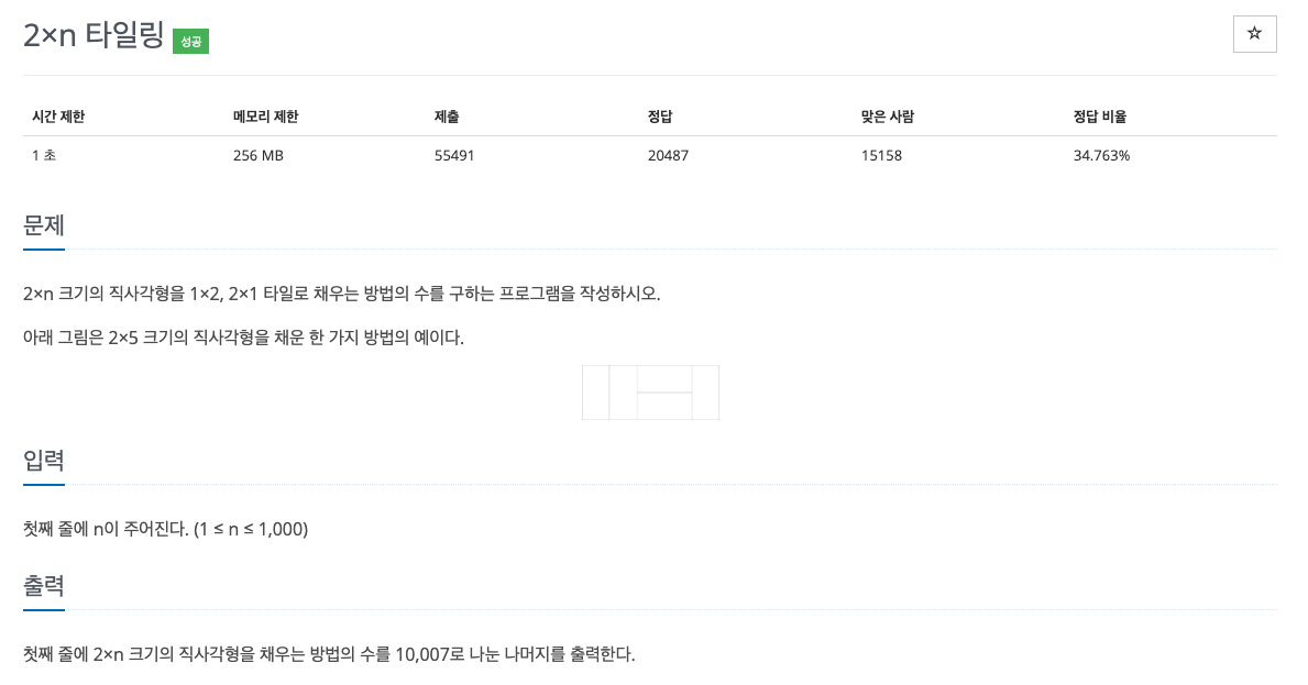 2. (2 x 1 ) 타일이 가로로 두개 놓여 있는 경우=> 위의 경우를 보고 점화식을 세울 수 있다.