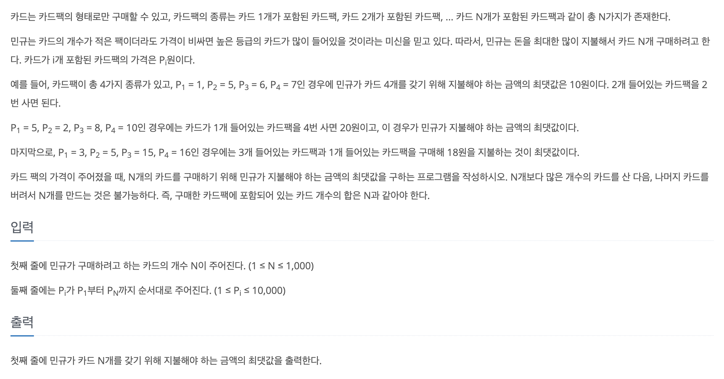=> D[i] : 카드 i개 구매하는 최대 비용
