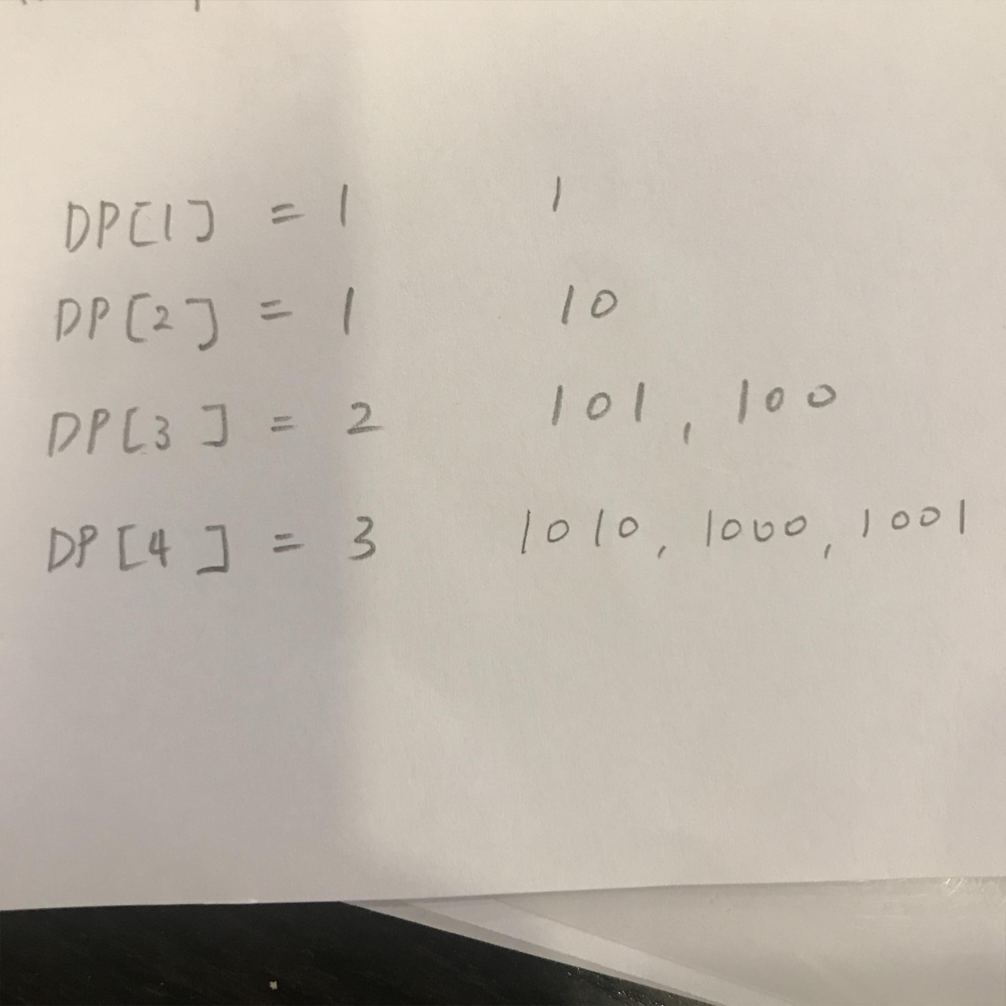 DP[i][0] = DP[i-1][0] + DP[i-1][1]
