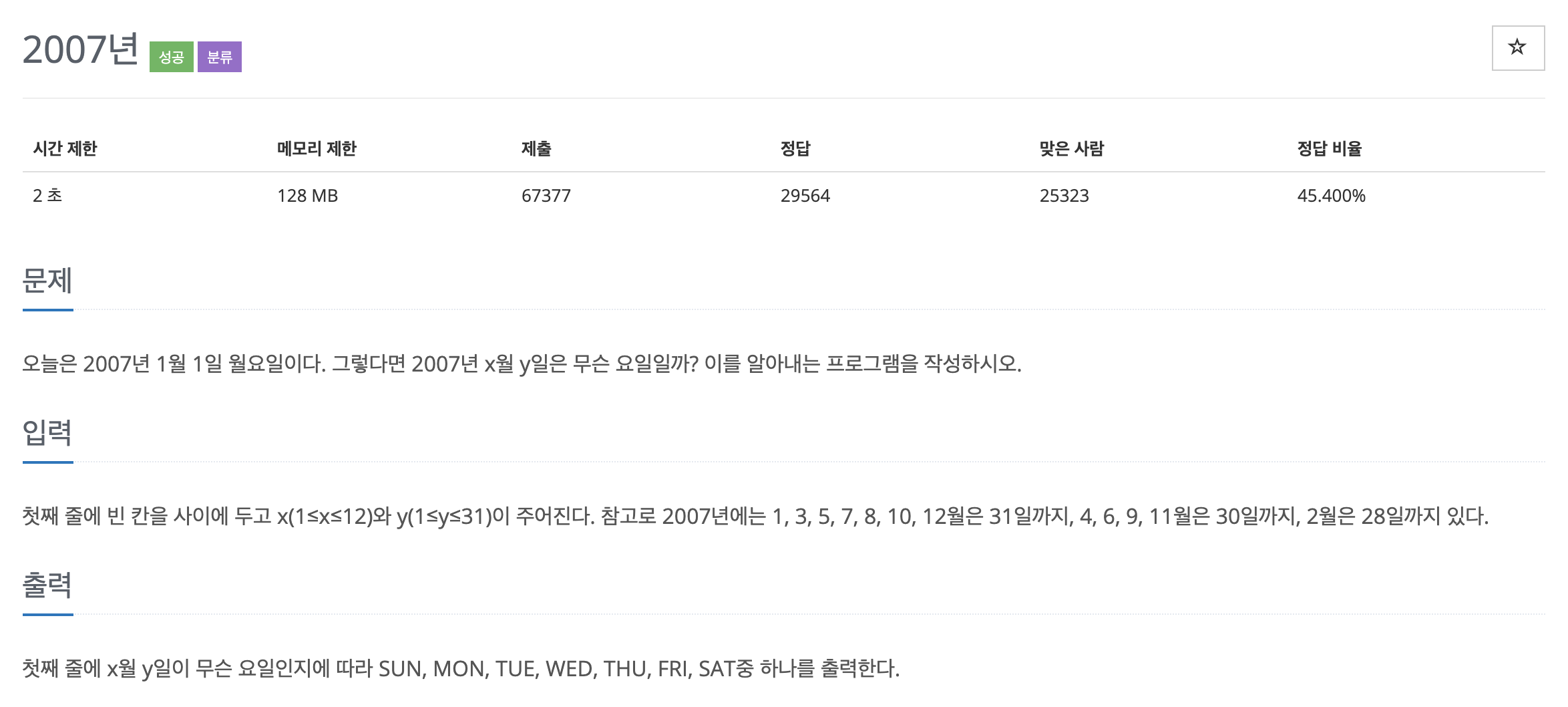 => 위와 같은 logic을 따라 입력받은 X월 Y일의 요일을 알아낼 수 있습니다.
