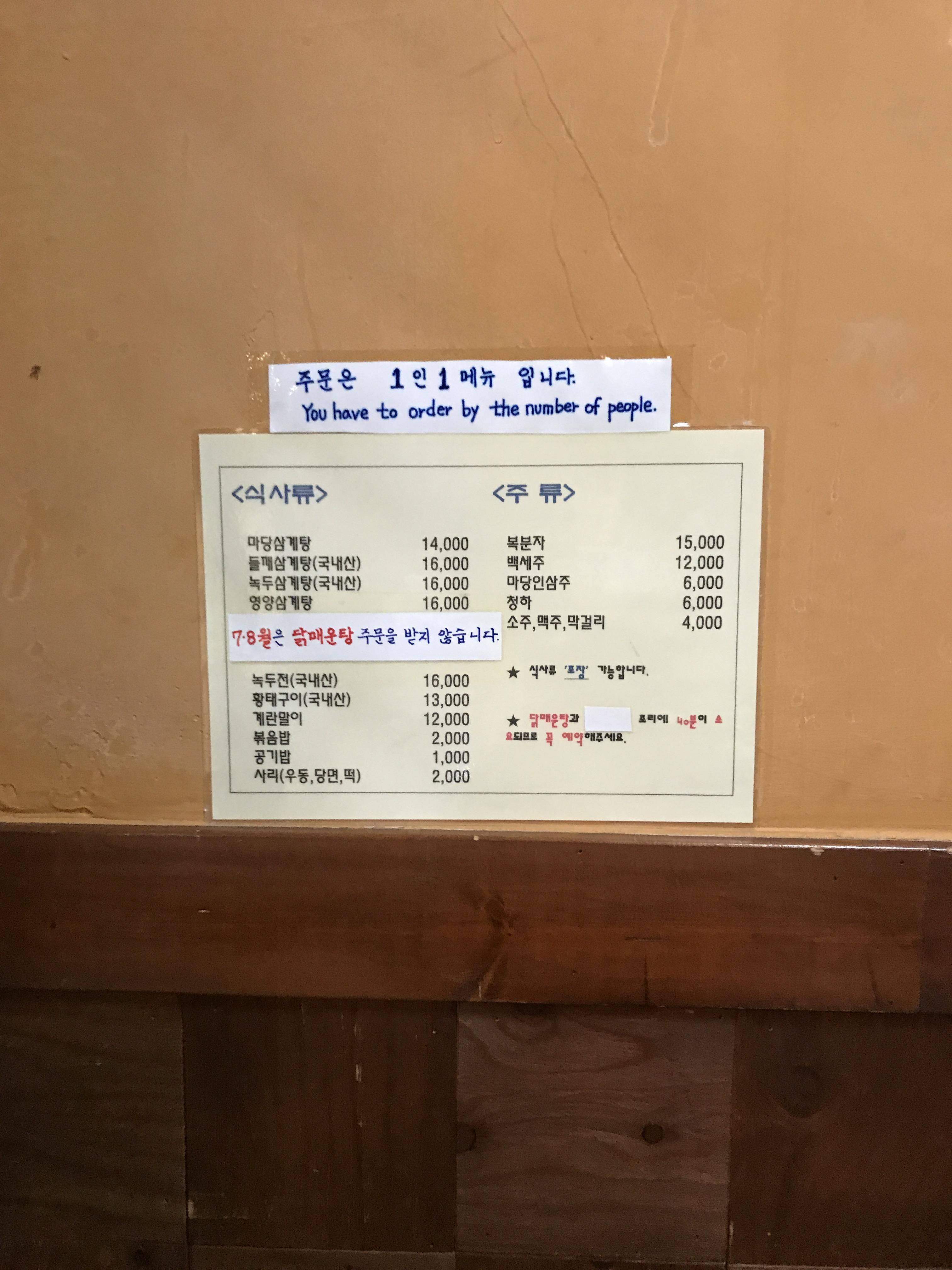 총평 : 맛있는 삼계탕을 먹었습니다. 재방문의사가 있습니다. 한국적인 느낌을 받을 수 있어 더욱 좋았습니다. 혜화에 있어 다른 즐길거리도 많아 매우 만족하였습니다. 다음기회에는 녹두삼계탕과 녹두전도 도전해볼 생각입니다.