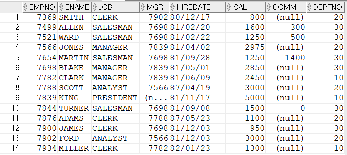 SALGRADE TABLE 테이블은 위와 같이 세 개의 테이블입니다.