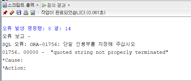 ORA-01756: 단일 인용부를 지정해 주십시오 | SQL ERRORStudy/데이터베이스 | DB 2020. 9. 8. 14:44반응형