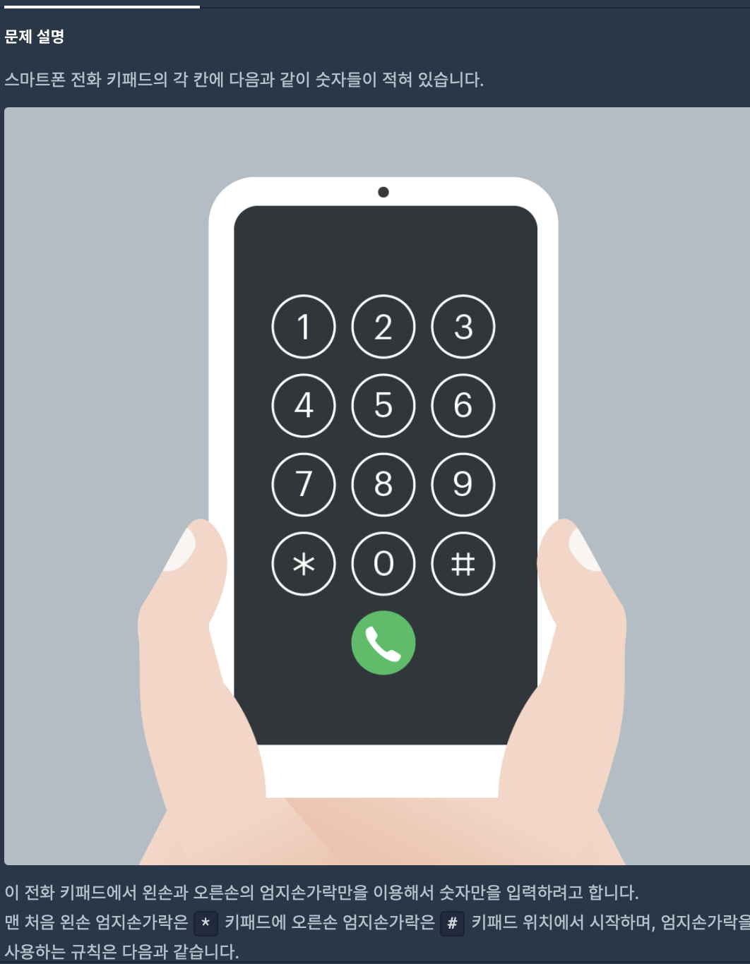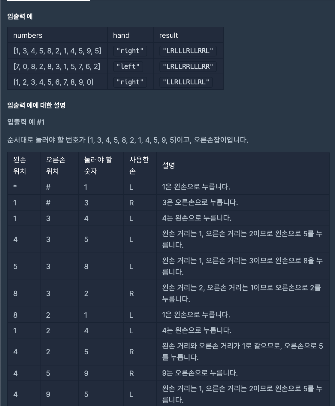 => 각 손으로 해당 버튼을 클릭한 후에는 현재 손의 위치를 체크하여 다음에 갈 수 있는 수를 계산하였습니다.
