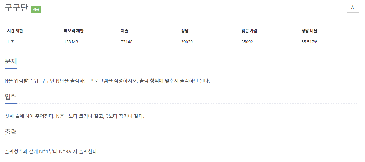 백준 2739 - 구구단백준 algorithm 2019. 9. 25. 07:34반응형