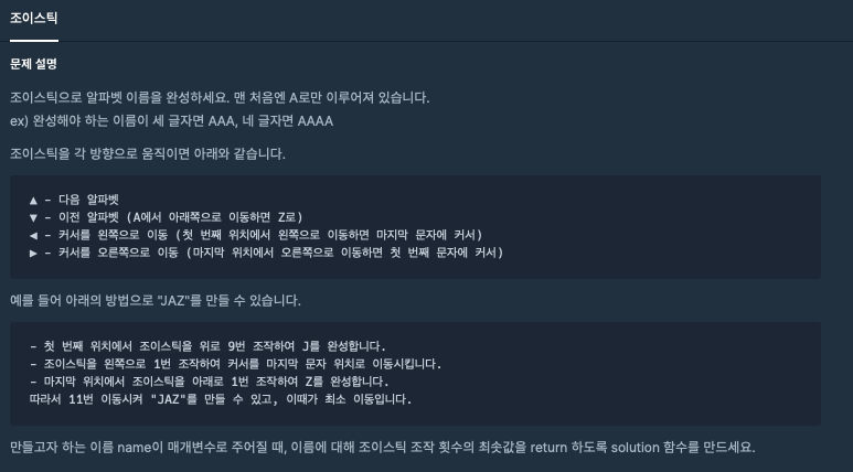 #include <algorithm> #include <string> using namespace std; int solution(string name) { int answer = 0; int n = name.length(); int turn = n - 1; //조이스틱을 한 방향으로 쭉 움직였을 때 for (int i = 0; i < n; i++) { if (name[i] - 'A' < 14) answer += name[i] - 'A'; else answer += 'Z' - name[i] + 1; int ind = i + 1; while (ind < n && name[ind] == 'A') ind++; turn = min(turn, i + n - ind + min(i, n - ind)); } answer += turn; return answer; }반응형'프로그래머스(Programmers)' 카테고리의 다른 글