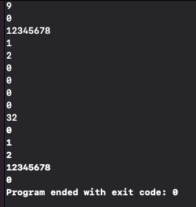 9 0 12345678 1 2 0 0 0 0 32예제 출력 1 복사