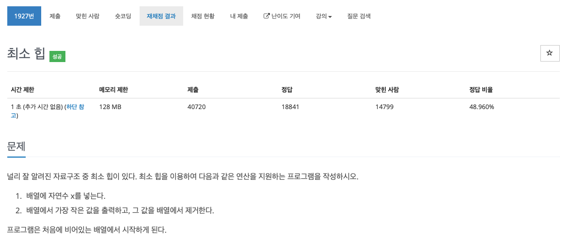 입력에서 0이 주어진 횟수만큼 답을 출력한다. 만약 배열이 비어 있는 경우인데 가장 작은 값을 출력하라고 한 경우에는 0을 출력하면 된다.