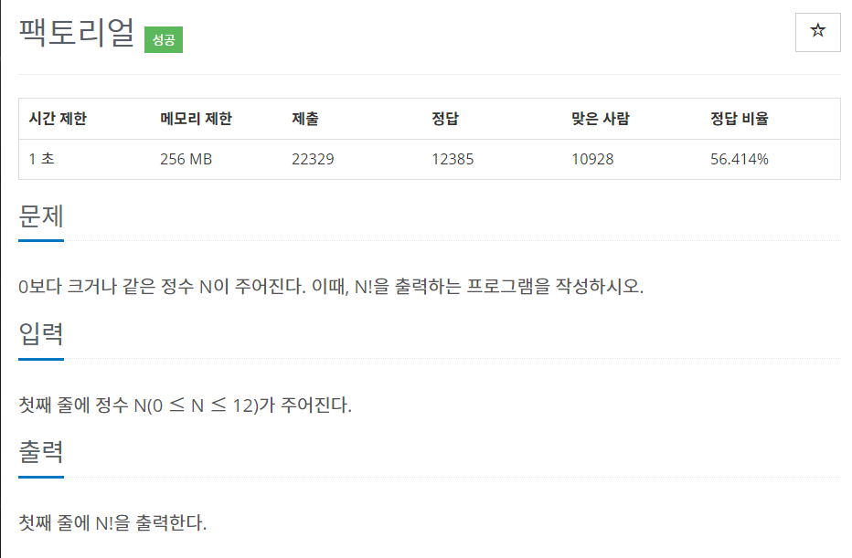 문제설명 입력값이 0에서부터 12까지밖에 안되므로 재귀로 하지 않고 함수를 선언해서 풀었다.