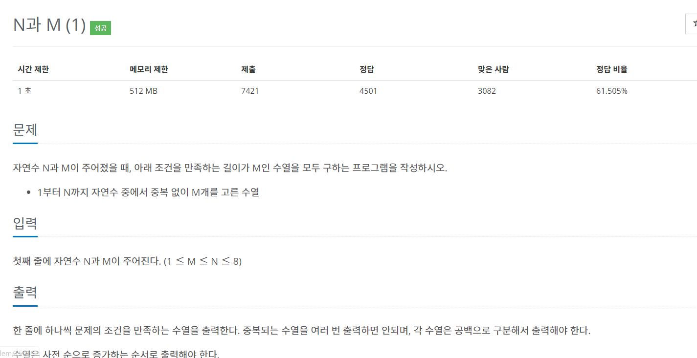 문제 설명 백트래킹과 관련된 기초 문제이다.