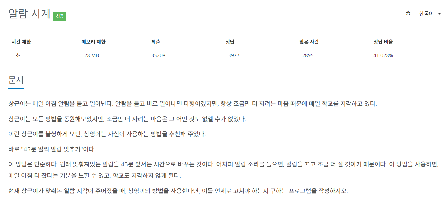 백준 2884 -알람시계백준 algorithm 2019. 12. 27. 11:00반응형