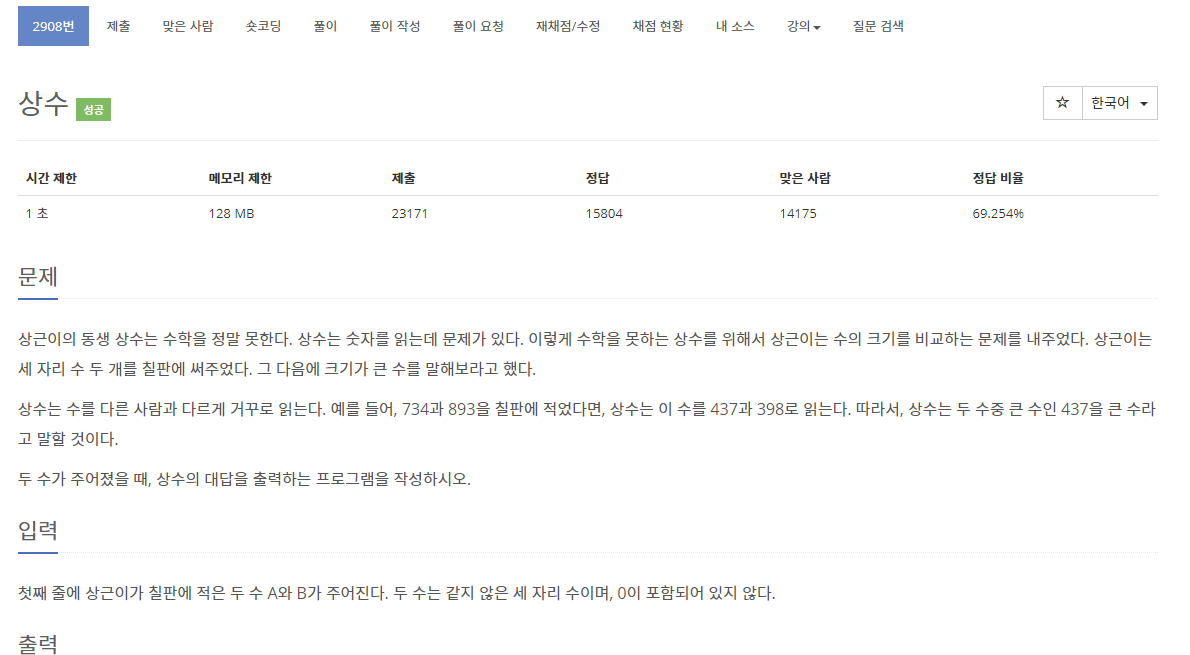 백준 2908 상수백준 algorithm 2020. 1. 8. 23:20반응형
