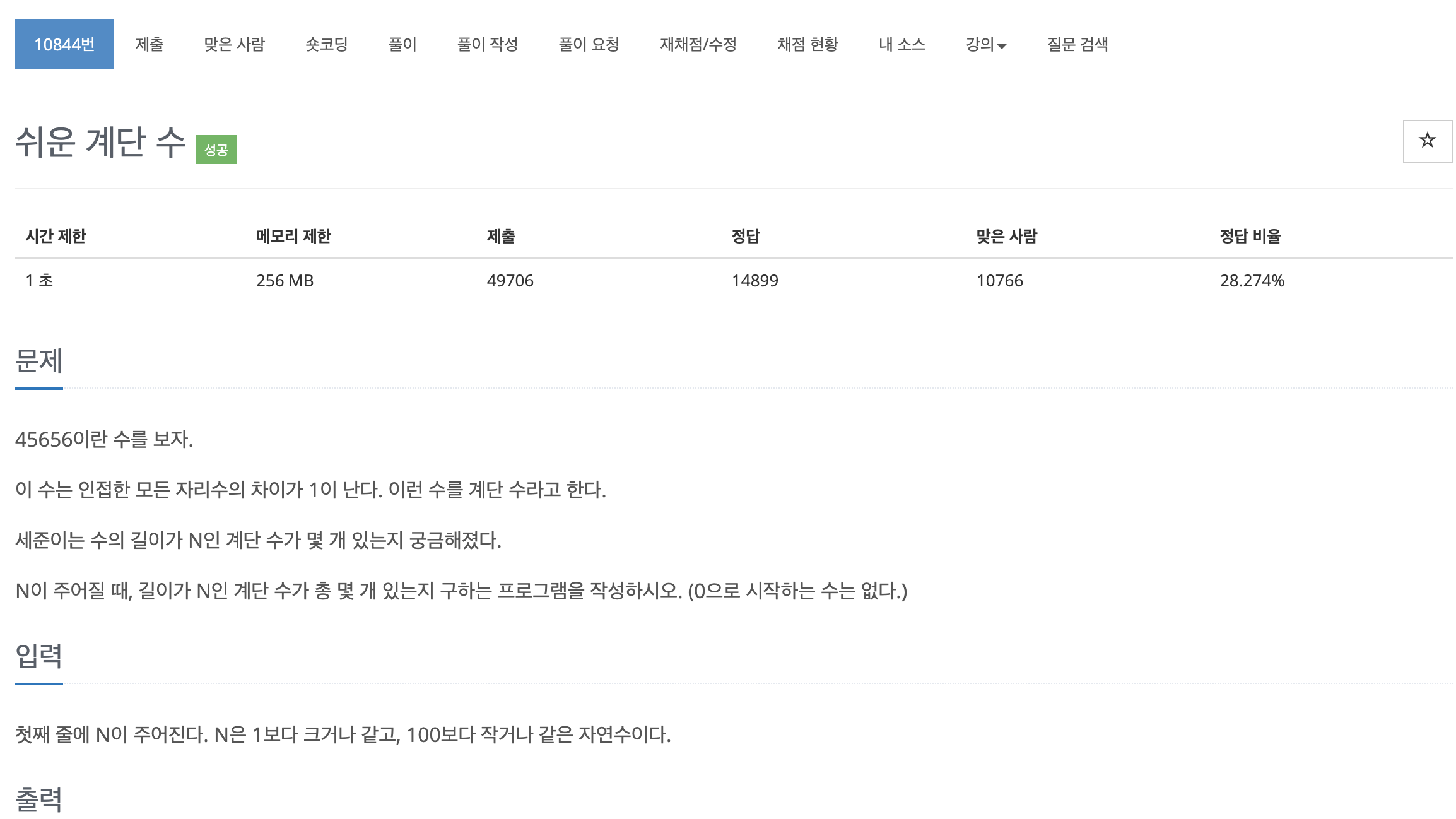 // // main.cpp // Baekjoon // // Created by 이준후 // Copyright © 2020 이준후. All rights reserved. // #include <iostream> #include <vector> #define mod 1000000000 using namespace std; int main() { long long dp[101][10]={};//자릿수, 들어갈 수 있는 숫자 long long sum=0; int N;// variable ~100 cin>>N; for(int i=1;i<10; i++) { dp[1][i]=1; } for(int i=2; i<=N; i++) { for(int j=0; j<10; j++) { if(j==0) { dp[i][j]=dp[i-1][j+1]; } else if(j==9) { dp[i][j]=dp[i-1][j-1]; } else { dp[i][j]=dp[i-1][j-1]+dp[i-1][j+1]; } dp[i][j]%=mod; } } for(int i=0; i< 10; i++) { sum+=dp[N][i]; } cout<<sum%mod<<'\n'; return 0; }반응형'백준 algorithm' 카테고리의 다른 글