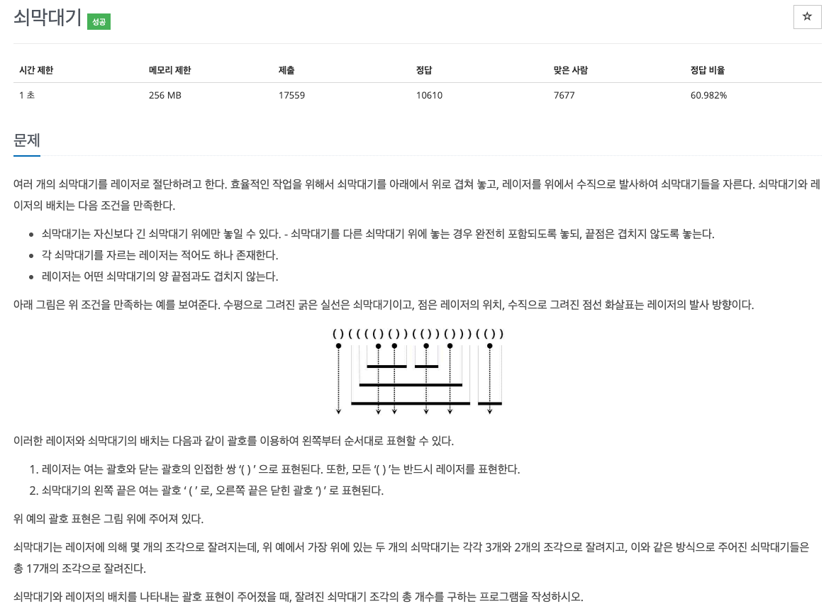 문제 설명 stack을 사용하여 풀 수 있다.