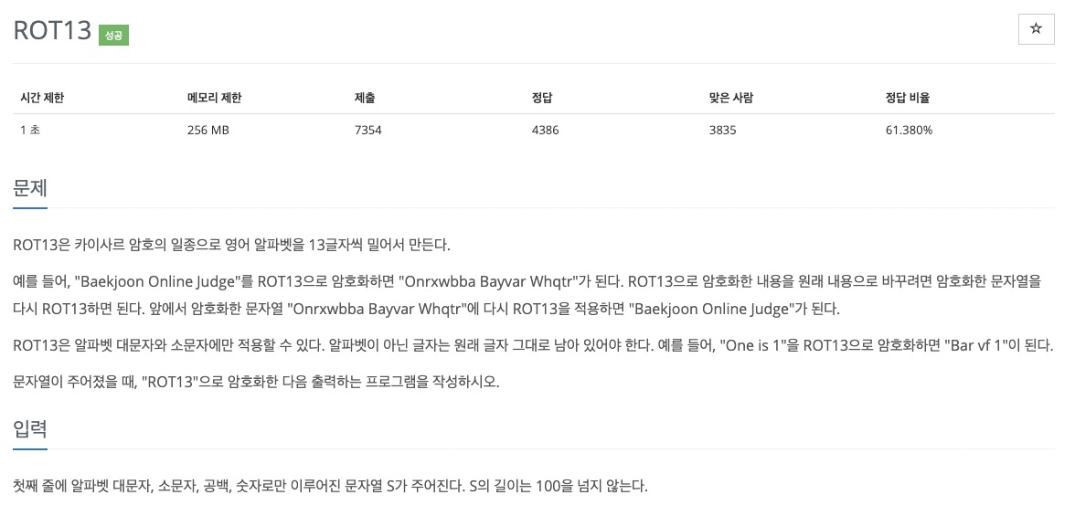 문제 설명 => 공백이 포함된 문자열을 입력받아 각 문자마다 아스키코드로 13을 더해주면 된다.