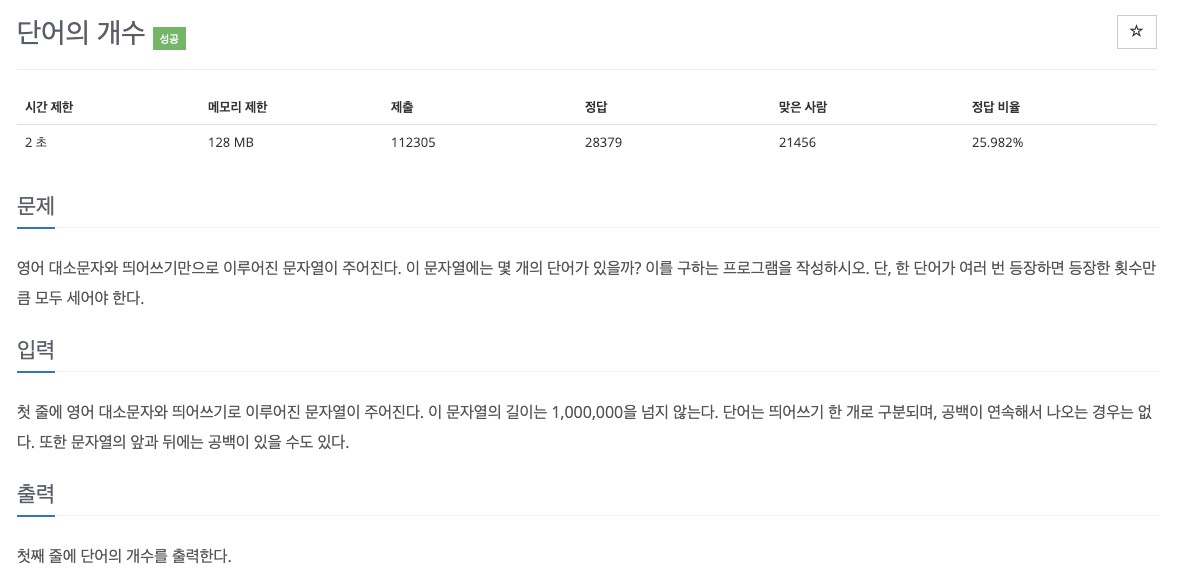 #include <iostream> #include <string> using namespace std; int main() { ios_base::sync_with_stdio(false); cin.tie(nullptr); cout.tie(nullptr); string s; getline(cin,s); int cnt=0; int length = s.length(); if(length < 1) { cout <<0<<'\n'; } else if(length == 1) { if(s[0]== ' ') cout <<0<<'\n'; else cout<<++cnt<<'\n'; } else{ for(int i=0; i<length-1; i++) { if(i==0) {if(s[i]==' ')continue;} else {if(s[i] == ' ')cnt++; else continue; } } cout << ++cnt<<'\n'; } return 0; }반응형'백준 algorithm' 카테고리의 다른 글