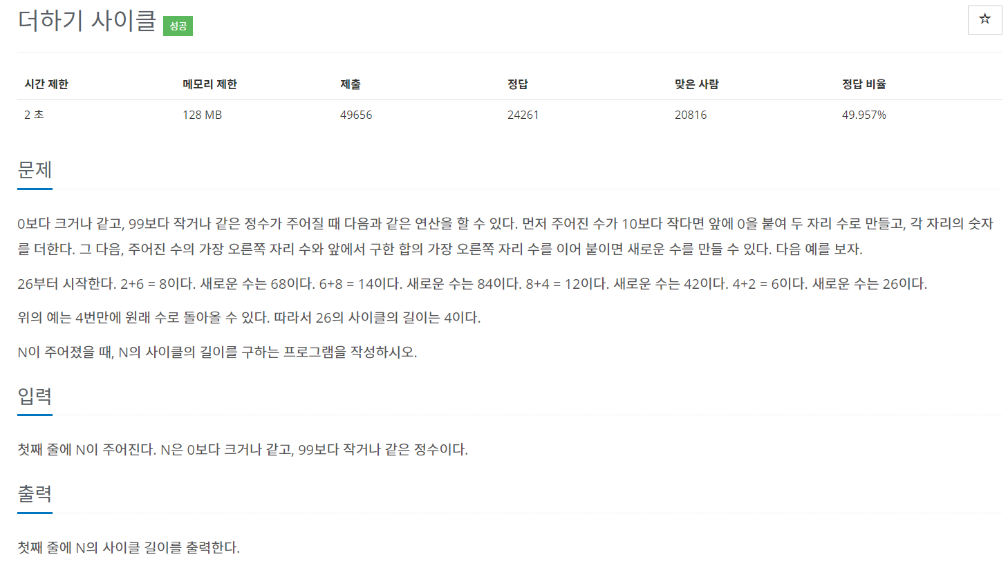 while문을 이용해서 처음 입력 받은 숫자가 나올때까지 사이클 횟수를 풀면 되는 문제이다.